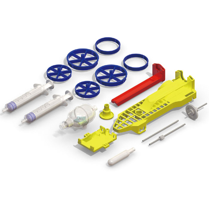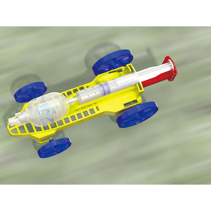 基本実験だけでなく、圧縮した空気の力で車を走らせる事で楽しみながら学べます。
