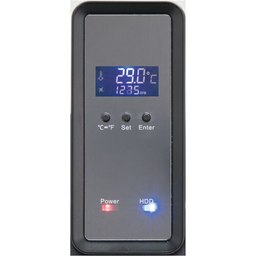 HDDの監視温度設定によりファンの回転数が変化します HDDの温度とファンの回転数が一目でわかるLCDを搭載 設定した温度を超えるとアラームを鳴らすHDD温度監視機能搭載 接続状態がわかる2モードLED機能、電源を落としても設定を維持するメモリー機能を新搭載 PCの起動・終了に合わせて自動的にHDDを回転・停止させるPC電源連動機能を搭載 大容量12TB HDDに対応! 製品特徴 新大型8cmファン搭載 サイドに静音性を高めた新型の8cm大口径ファンを搭載!ケース内部を強力に冷却します! ※HDDの監視温度設定によってファンの回転数が変化します。